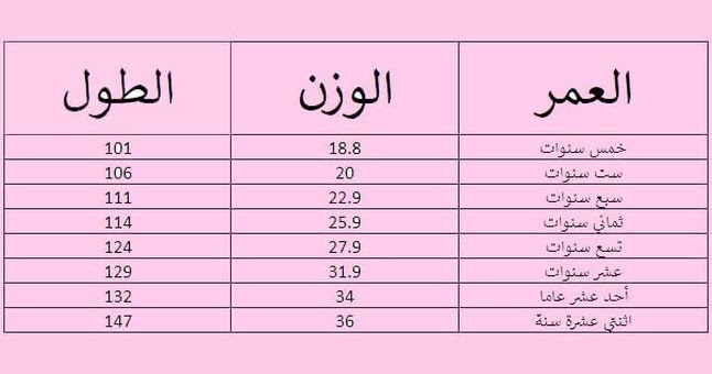 جدول بطول ووزن الاطفال حسب العمر 3a2ilati