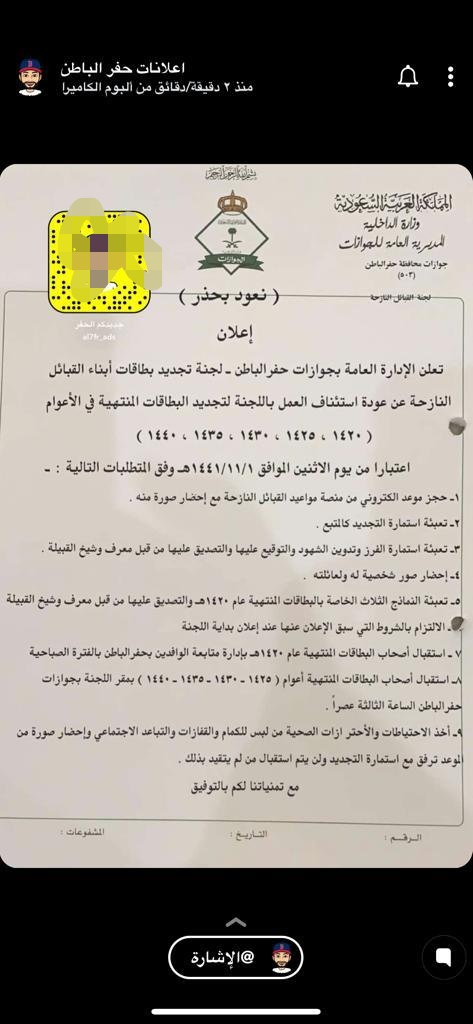 بدأت المديرية العامة للجوازات منح بعض أبناء القبائل النازحة لاسيما في المناطق الشمالية بطاقات ممغنطة أصدرت من طريق فرع المديرية في محافظة حفر الباطن في الأسبوع الماضي. تغيير المركز الرئيسي للمنشأة. If the beneficiary s age is less than 15 years or is not issued an id then enter the household parent id but if identify a family member service is performed please enter the member id.